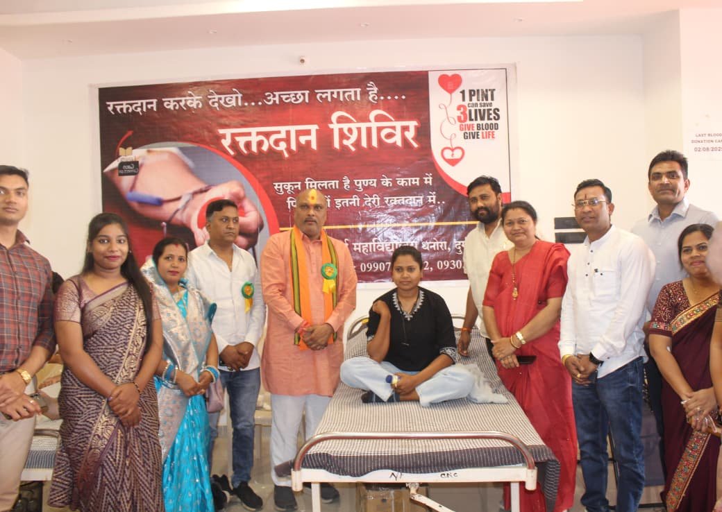 दुर्ग। अथर्व महाविद्यालय धनोरा में स्वैच्छिक रक्तदान शिविर का आयोजन किया गया। कार्यक्रम का उद्देश्य रक्त की आवश्यकता की पूर्ति के लिए जनजागरूकता बढ़ाना तथा युवा वर्ग को मानवीय सेवाओं के लिए प्रेरित करना रहा। जिला अस्पताल दुर्ग के ब्लड बैंक टीम द्वारा रक्त संग्रहण की सम्पूर्ण प्रक्रिया कुशलता से सम्पन्न कराई गई।