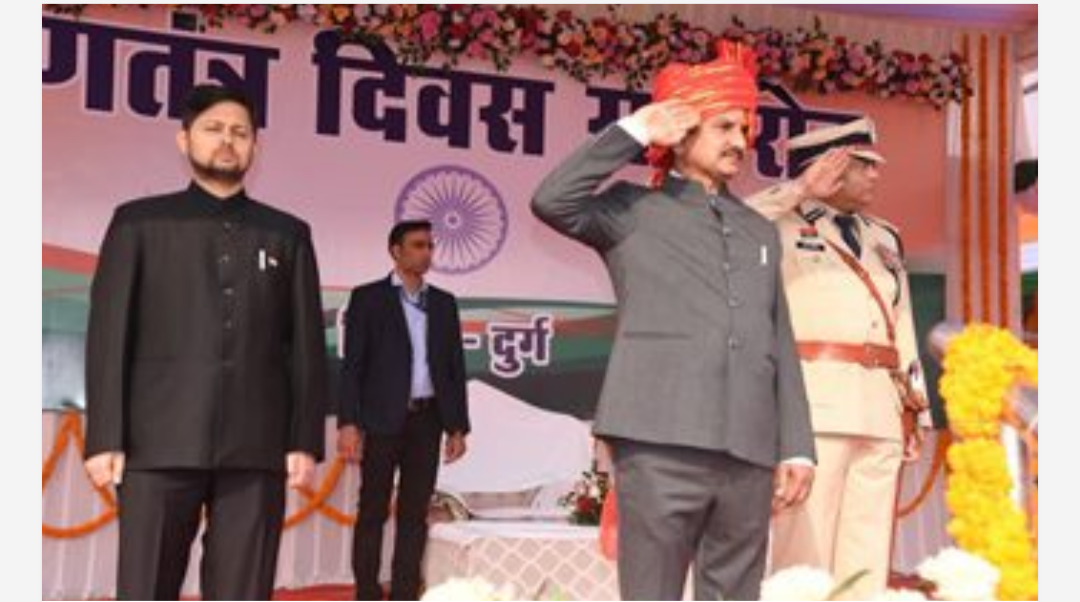 दुर्ग। दुर्ग के ऐतिहासिक रविशंकर स्टेडियम में आज 77वां गणतंत्र दिवस पूरे गौरव और उत्साह के साथ मनाया गया। समारोह के मुख्य अतिथि केंद्रीय आवास और शहरी कार्य राज्यमंत्री तोखन साहू ने सुबह विधिवत ध्वजारोहण किया। ध्वजारोहण के पश्चात उन्होंने परेड का निरीक्षण किया और सलामी ली।