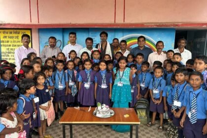 उतई। शासकीय प्राथमिक शाला उतई के बच्चों को पेन, कॉपी, चॉकलेट के…
