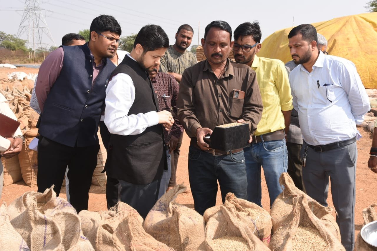 इसी प्रकार जामगांव (एम) उपार्जन केन्द्र में धान बोरे में अधिक तौल कराने की शिकायत पर कलेक्टर ने मौके पर धान बोरे की रेण्डम तौल करायी। जिसमें बोरा में 300 ग्राम धान की अधिक मात्रा पायी गई। बोरे में निर्धारित मात्रा से अधिक धान तौल कराने पर कलेक्टर ने समिति प्रबंधक को कारण बताओं नोटिस देने निर्देशित किया। कलेक्टर श्री सिंह ने उक्त गांवों में एसआईआर के अंतर्गत डिजिटाइजेशन कार्यों का भी अवलोकन किया और प्रगति लाने के निर्देश दिये। इस अवसर पर एसडीएम श्री लवकेश ध्रुव, तहसीलदार श्री पवन ठाकुर, खाद्य नियंत्रक श्री अनुराग भदौरिया, सीसीबी के प्रभारी नोडल अधिकारी श्री हृदेश शर्मा, धान उपार्जन केन्द्रों के समिति प्रबंधक व अन्य कर्मचारी और धान बेचने पहुंचे क्षेत्र के कृषक उपस्थित थे।