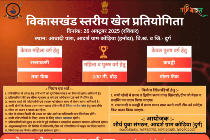दुर्ग विकासखंड स्तरीय खेल प्रतियोगिता कोड़िया में 26 अक्टूबर को