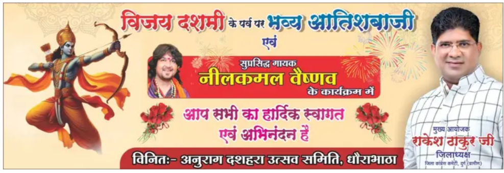 धौंराभांठा में भव्य आतिशबाजी के साथ कल मनाया जाएगा दशहरा, लोकगायक नीलकमल वैष्णव देंगे लाइव प्रस्तुति
