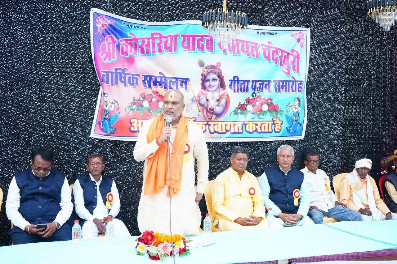 श्री चंद्राकर ने आगे कहा कि यादव समाज स्वाभिमानी समाज है। समाज ने अपनी संस्कृति और विरासत को संभाल कर रखा है। उन्होंने समाज के सभी क्षेत्रों में यादव समाज को आगे बढ़कर कार्य करने प्रेरित किया। साथ ही सामाजिक जनो से आग्रह करता हूं समाज को आगे बढ़ाने के लिए शिक्षा बहुत ज़रूरी हैं। इसलिए समाज के बेटा बेटी को अच्छी शिक्षा व संस्कार प्रदान करे। सभी को इस सफल आयोजन के लिए हार्दिक शुभकामनाएं।