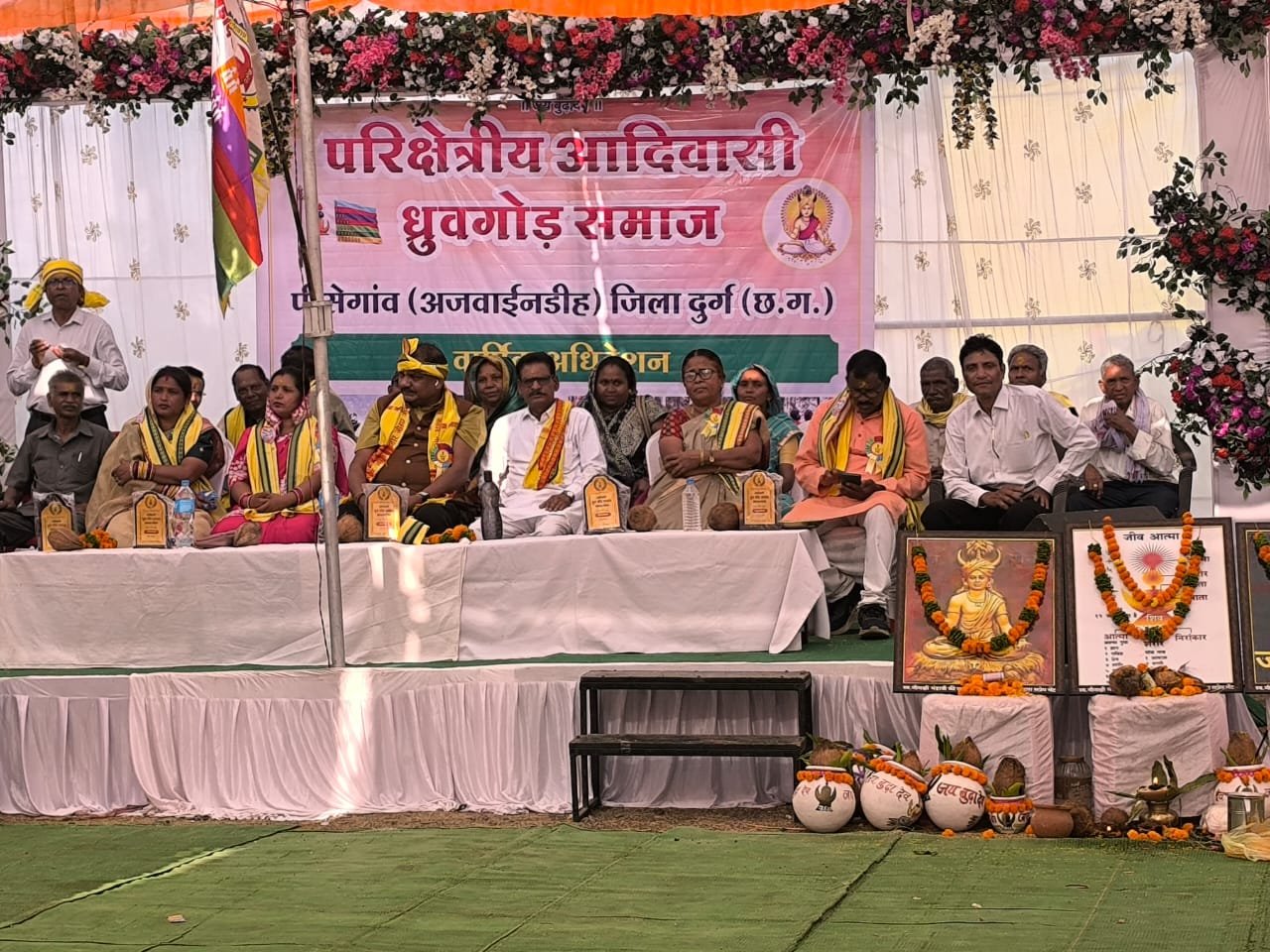 दुर्ग। परिक्षेत्रीय आदिवासी ध्रुव गोंड समाज पीसेगांव का वार्षिक आमसभा ग्राम धनोरा में 5 अप्रेल दिन रविवार को मनाया गया। जिसमें सर्वप्रथम आदी शक्ति बुढादेव की पूजा अर्चना की गई। जिसके उपरांत समाज के द्वारा अपनी पारंपरिक गीत संगीत प्रस्तुत की गई। पश्चात अतिथि स्वागत सम्मान किया गया।
