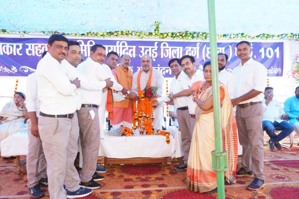 उतई। सेवा सहकारी समिति उतई में वार्षिक आमसभा का आयोजन शुक्रवार को मवेशी बाजार उतई में आयोजित किया गया। जिसमें धान उपार्जन उपकेन्द खोपली में निर्मित सीसी रोड का लोकार्पण एवं मां शीतला बीज उत्पादक सहकारी समिति उतई का उदघाटन किया गया। आमसभा के मुख्य अतिथि दुर्ग ग्रामीण विधायक एवं पिछड़ा वर्ग विकास प्राधिकरण के उपाध्यक्ष ललित चंद्राकर थे। अध्यक्षता भाजपा प्रदेश मंत्री जितेंद्र वर्मा ने की। विशेष अतिथि जिला भाजपा मंत्री रोहित साहू, जिला पंचायत सभापति श्रीमति श्रद्धा साहू, नगर पंचायत अध्यक्ष श्रीमति सरस्वती साहू, नगर पंचायत उपाध्यक्ष शिवनारायण देशमुख, भाजपा उतई मंडल अध्यक्ष श्रीमति शीतला ठाकुर, भाजपा उतई मंडल महामंत्री द्वय प्रवीण यदु, चंदु देवांगन थे।