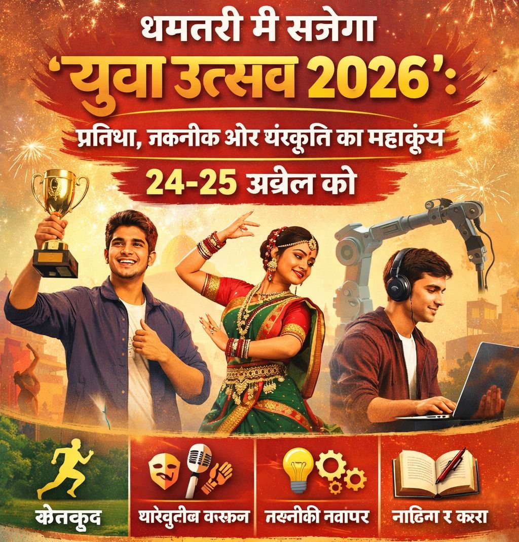 रायपुर। जिले के युवाओं को अपनी प्रतिभा दिखाने और नए अवसरों से जोड़ने के उद्देश्य से 24 एवं 25 अप्रैल को धमतरी में “युवा उत्सव 2026 – इंटर कॉलेज प्रतियोगिता” का भव्य आयोजन किया जाएगा। जिला प्रशासन द्वारा आयोजन की रूपरेखा तैयार कर सभी आवश्यक व्यवस्थाएं सुनिश्चित की जा रही हैं। इस युवा उत्सव में जिला सहित राज्य के विभिन्न महाविद्यालयों के युवा पर पंजीयन कर सकते है। अभी तक धमतरी जिला सहित आस-पास के जिलों के 2 हज़ार से अधिक प्रतिभागी अपना पंजीयन कर चुके है।